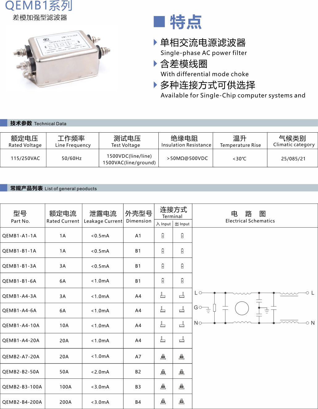 单相交流电源滤波器