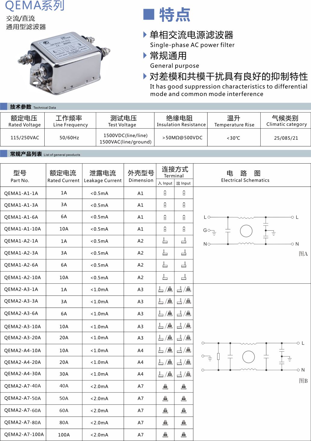 单相交流电源滤波器