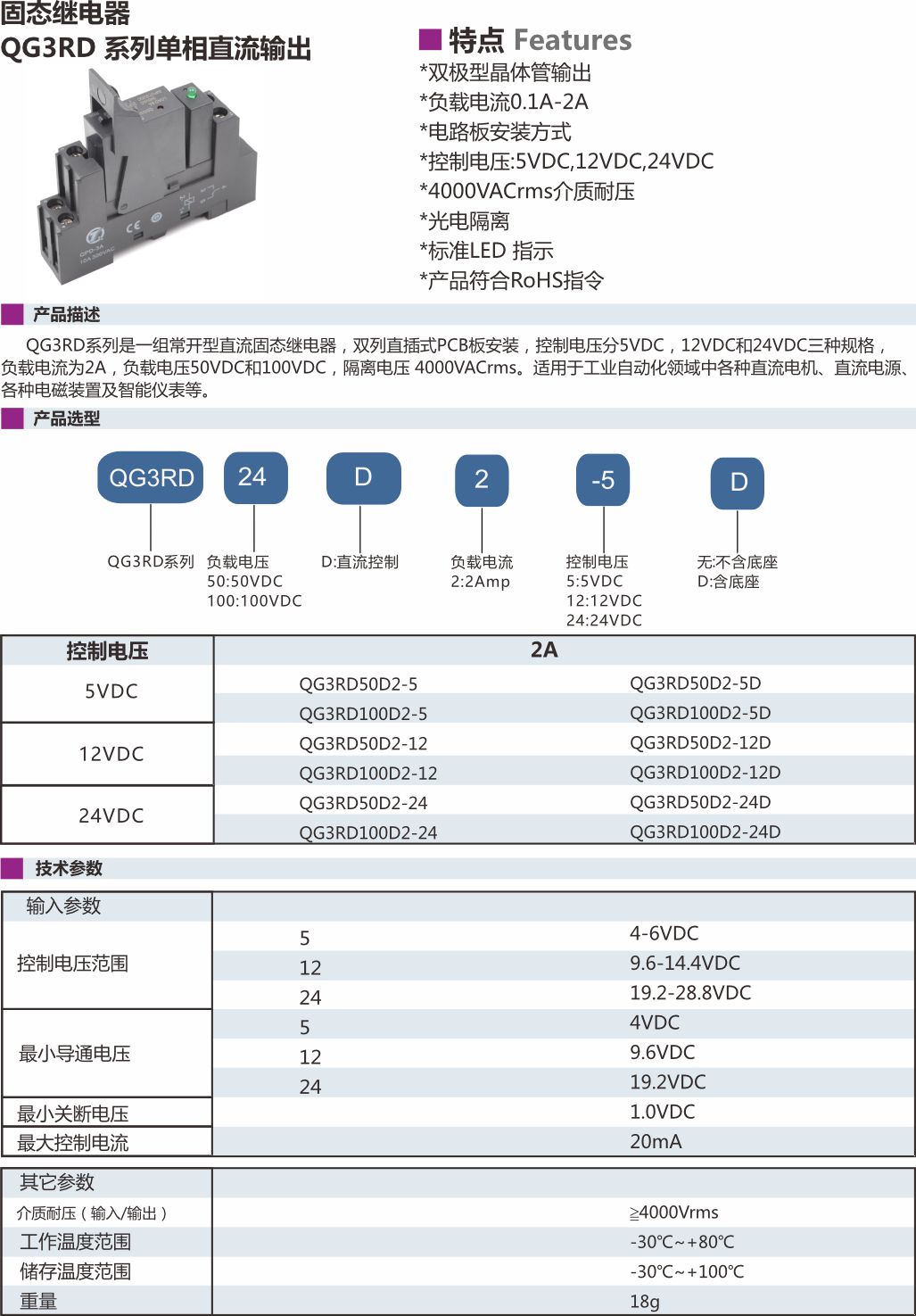 *控制电压:5VDC,12VDC,24VDC